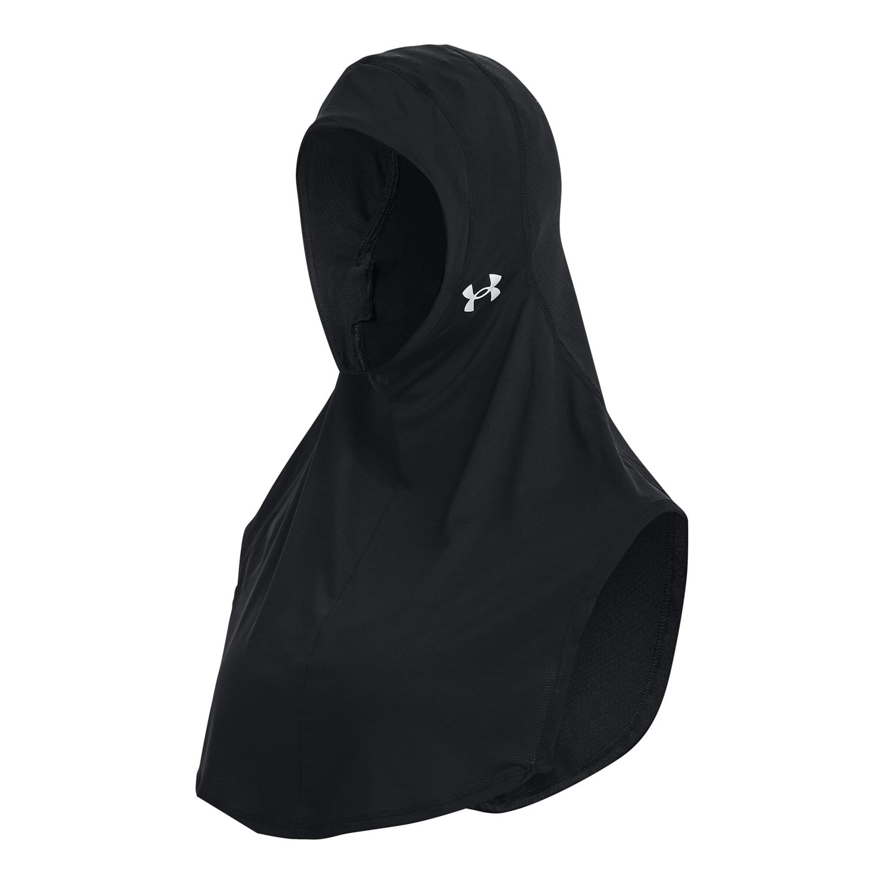 Made from super-soft smooth fabric with a unique hex-shaped mesh pattern for ultimate breathability. It features a contoured front panel and extended length for modesty coverage that is designed to stay in place and prevent slippage during activity.The construction includes smooth chafe-free flatlock seams. The hijab is designed with built-in access for headphones.
