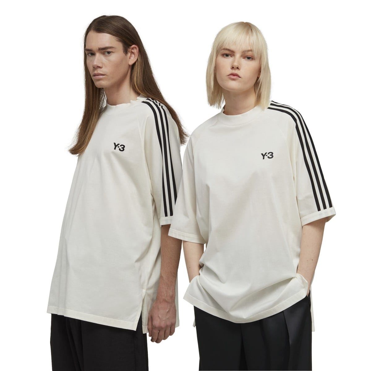 Y-3 3-Stripes SS T-Shirt in off white - black.