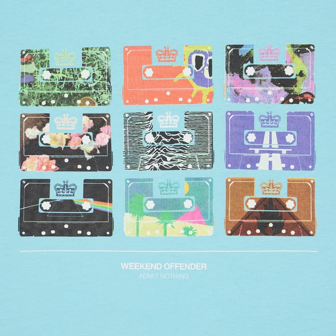 - Bespoke graphic print featuring mini prison cassettes with album art infills.