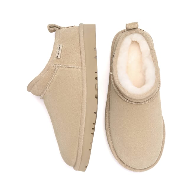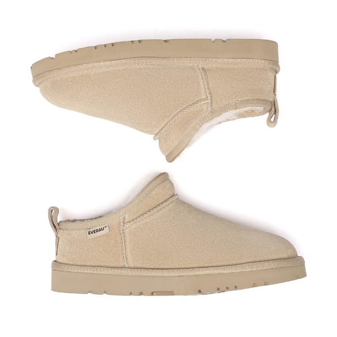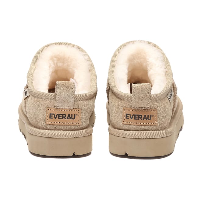 "Inspired by the classic silhouette, the EVERAU Mini Boots feature a slightly lower ankle design, making them easy to slip on and off—ideal for everyday wear and effortless style. Perfect for those who value convenience without compromising warmth or quality. Whether you’re running errands, relaxing at home, or heading out for a casual coffee, these mini boots deliver all-day warmth and dependable durability. Materials: • Upper: Cow Suede • Lining: Sheepskin Wool • Insole: Sheepskin Wool • Outsole: EVA" -