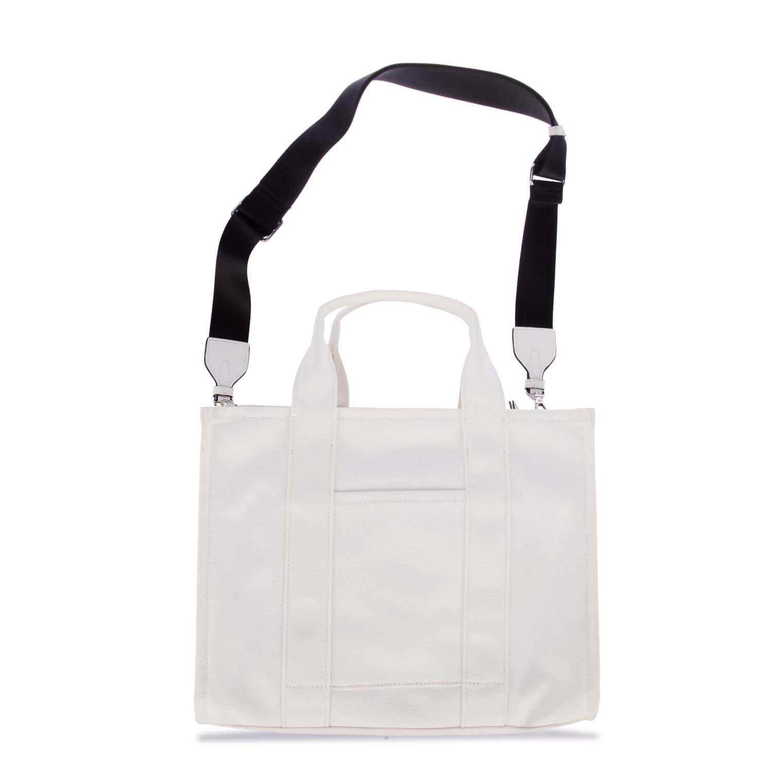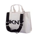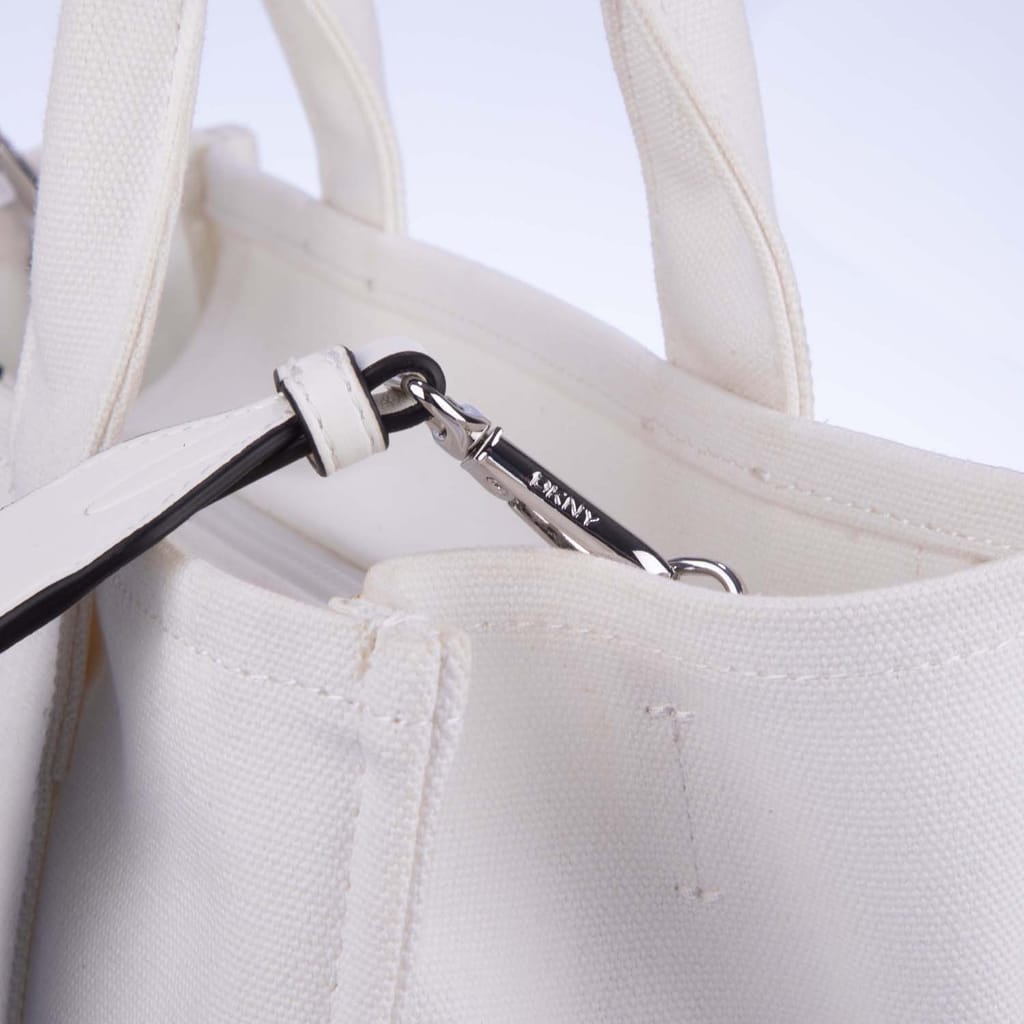 Signature DKNY-printed lining with compression straps, zippered divider, and zippered pocket to keep belongings organized and secure. Removable straps and chains, can be carried by hand, worn on the shoulder or as crossbodies. -