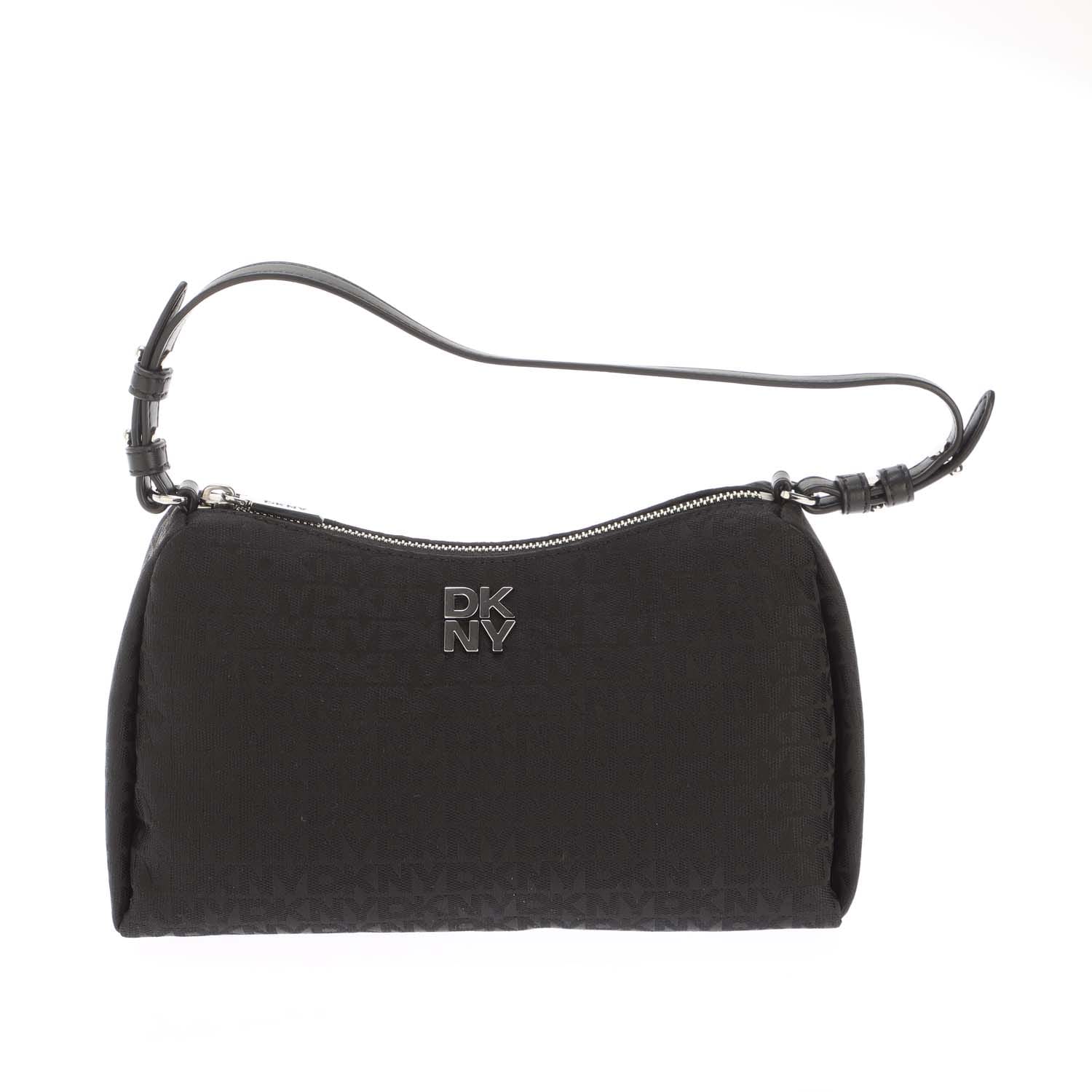 Gold hardware with secure zip-top closure. Adjustable strap. Spacious interior lined in polyester. -