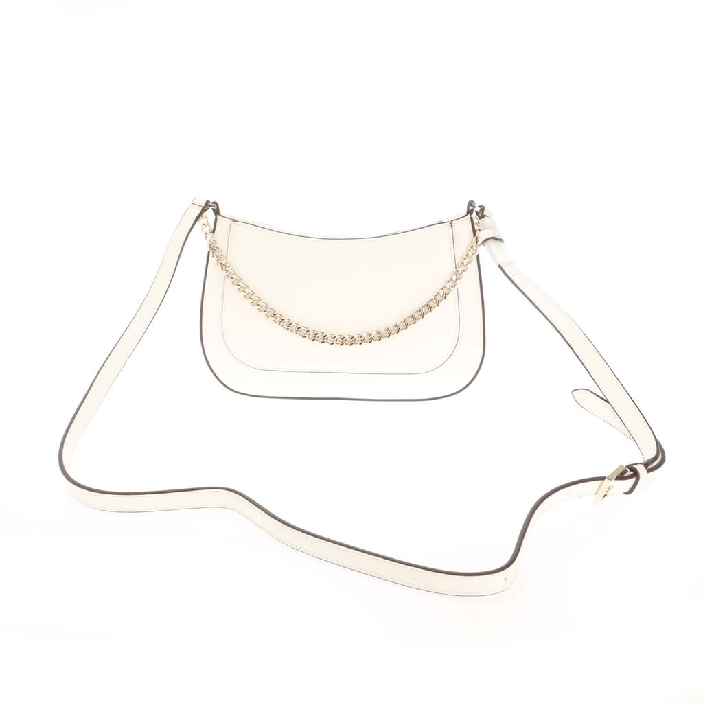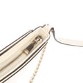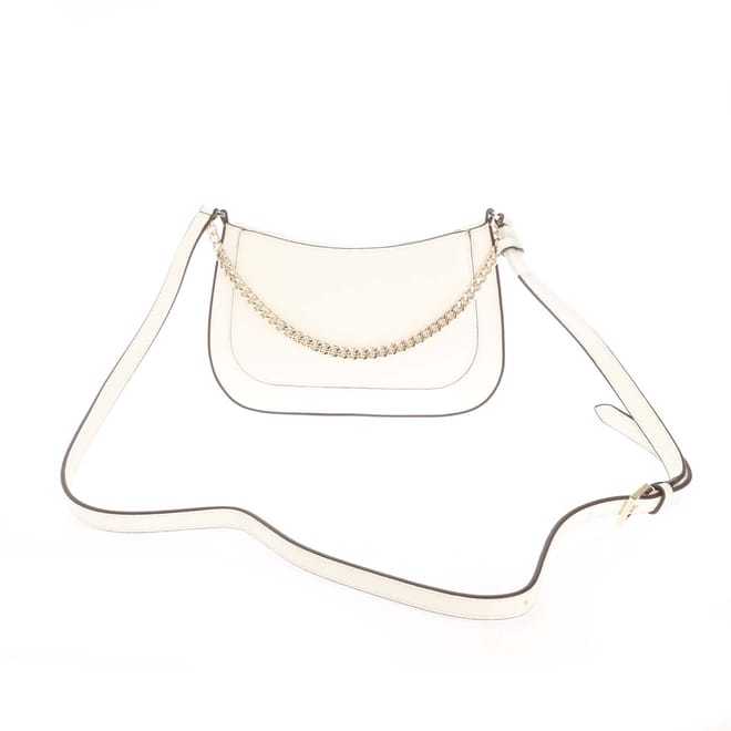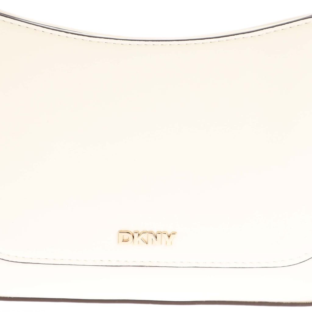 Gold-toned chain detail on the front flap. Shoulder strap. Three main compartments. Interior pockets. DKNY logo. -