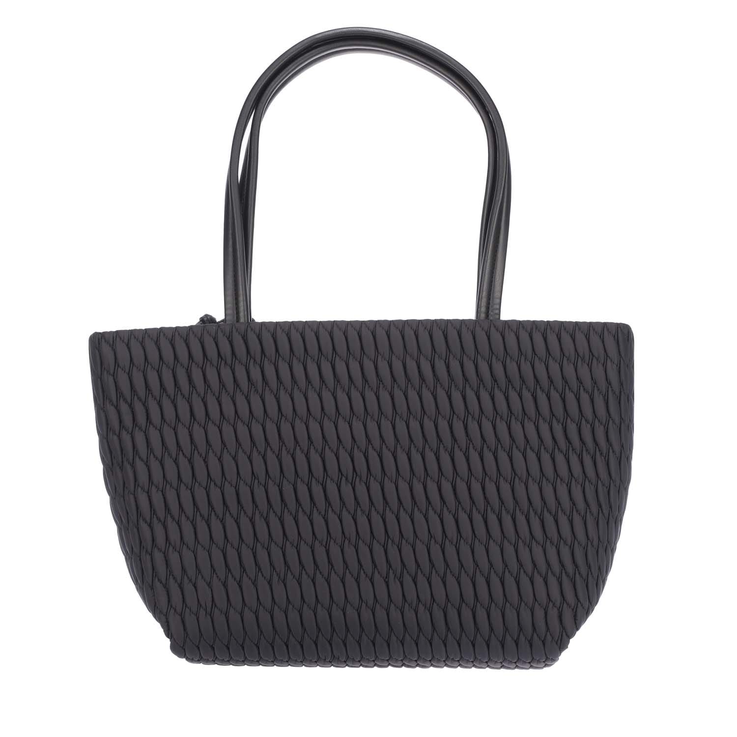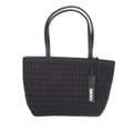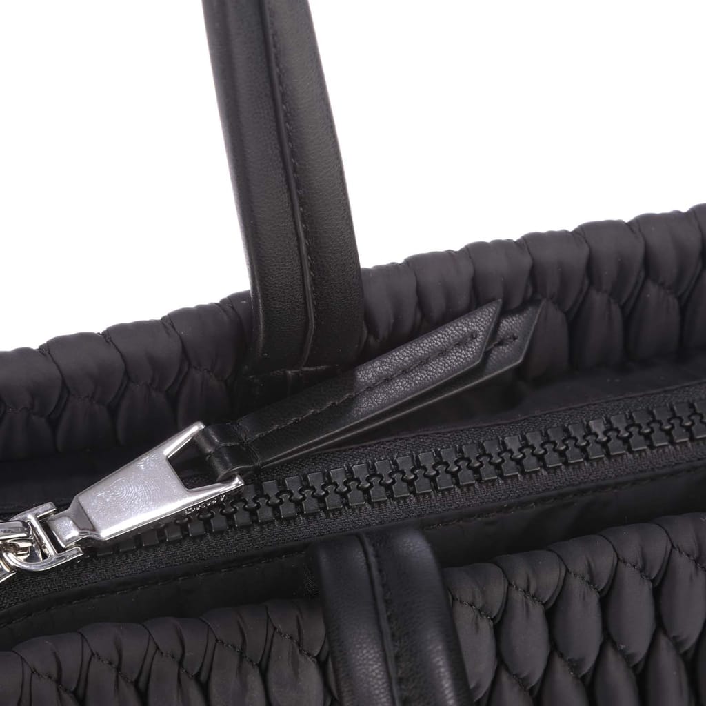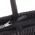 Spacious main compartment, suitable for a4 documents. Two handles. Closes with zipper. One zip pocket. Two slip pockets. Imitation leather trimmings. Polished silver metal fittings. Detachable pendant. -