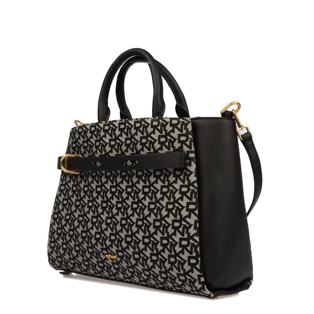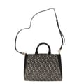 Top zip and magnetic closure. Adjustable detachable shoulder strap. Metal feet. All-over logo. -