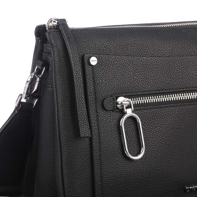 Adjustable detachable shoulder strap. Top zip fastening. Front zip-fastening pocket. Silver-tone logo lettering. -