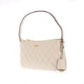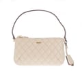 Adjustable straps. Compact design features dual zippers for organized storage. Quilted design. -