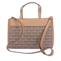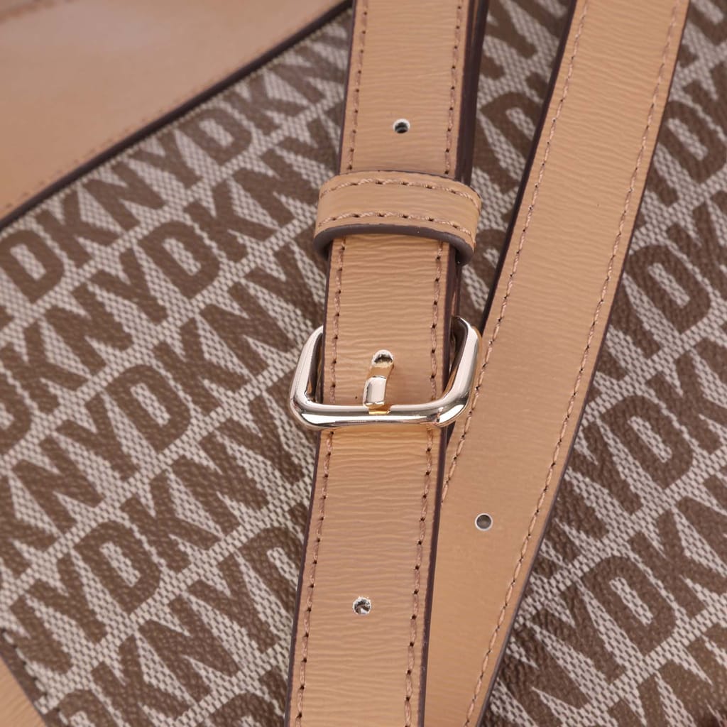 Top 3 compartment. Divided by a middle zip compartment. DKNY nameplate at front. Made of leather and DKNY signature pvc body. Interior zip wall pocket. Multifunctional open wall pocket for cellphone. Divided by a large compartment. DKNY signature interior lining. Flat bottom. 5''handle drop and 22'' adjustable/detachable shoulder strap. -