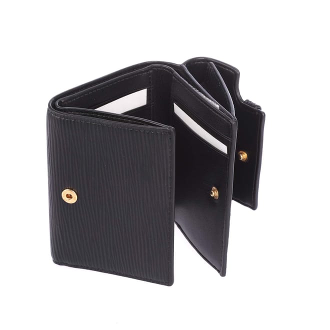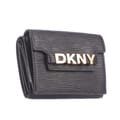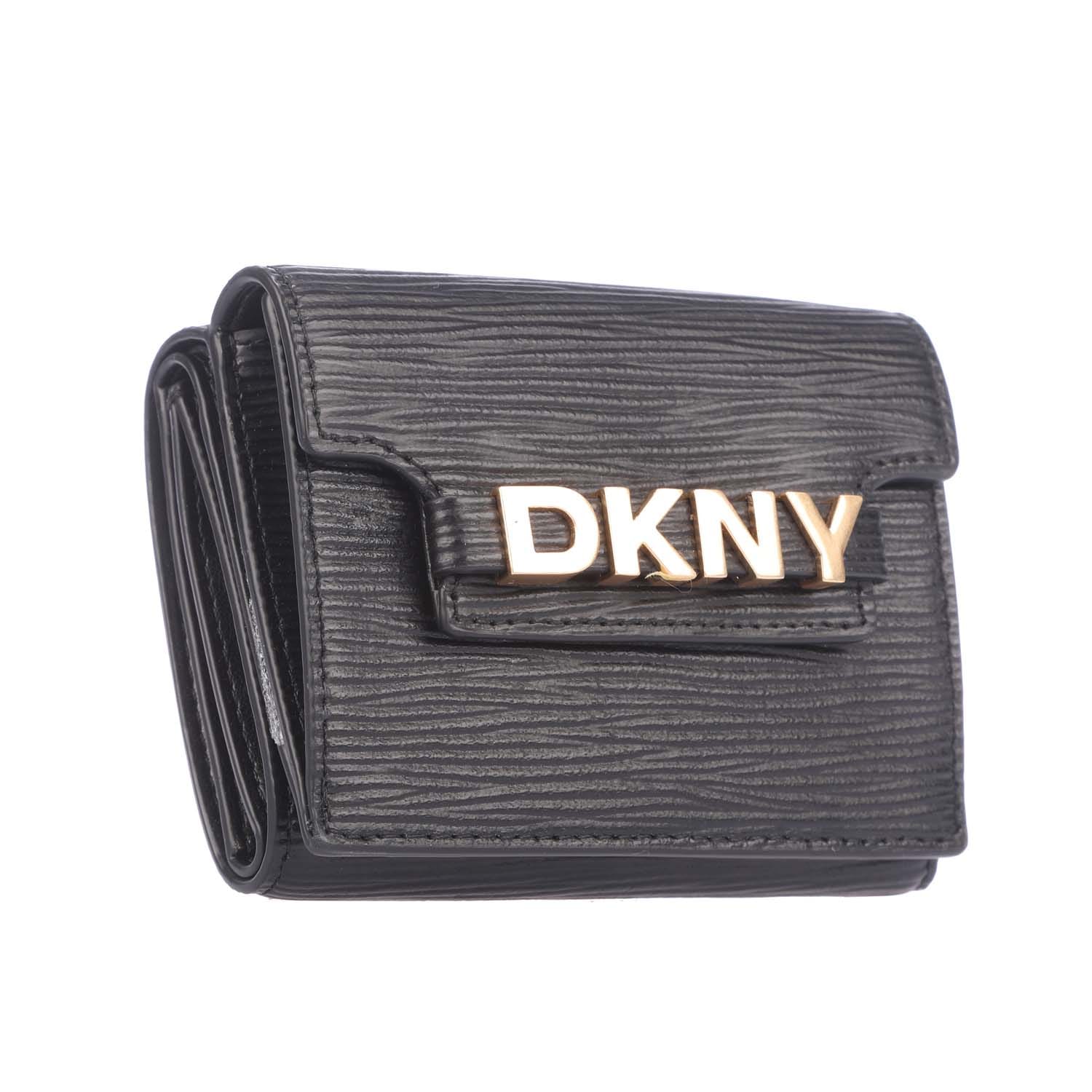 Card slots, slip compartment, coin compartment. Press stud fastening. Gold-toned DKNY logo on the front. Faux leather fabric. -