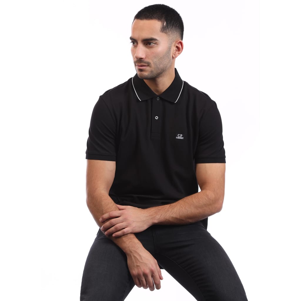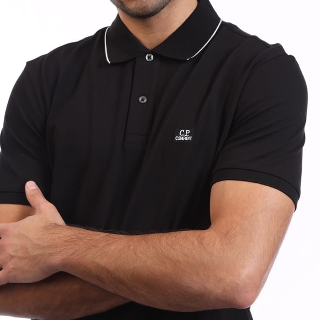 Mens C.P. Company Stretch Piquet Striped Collar Polo Shirt in black.