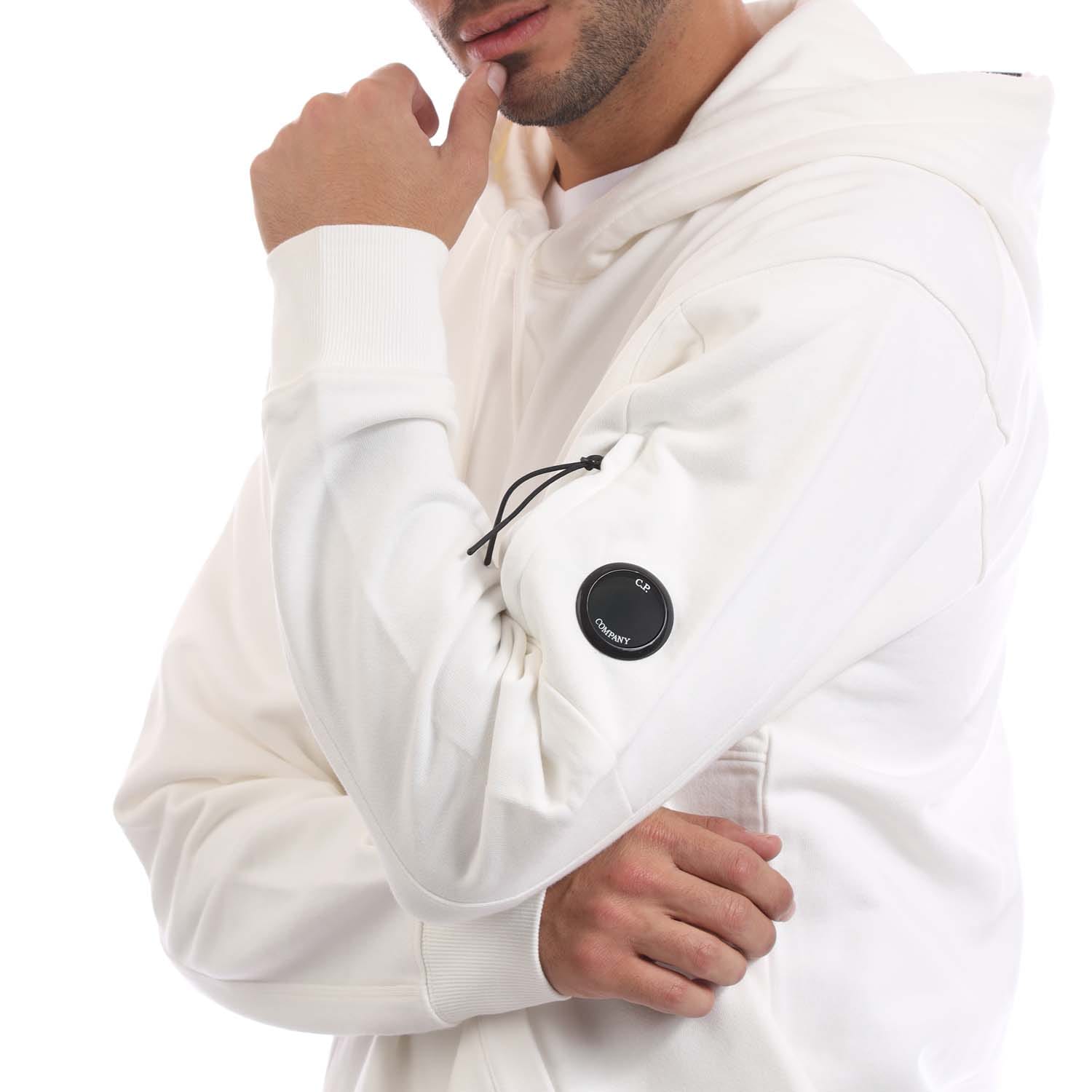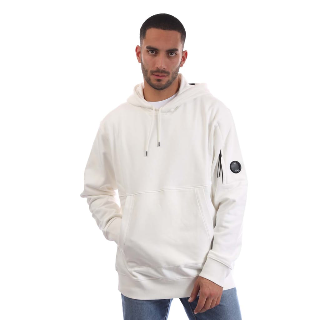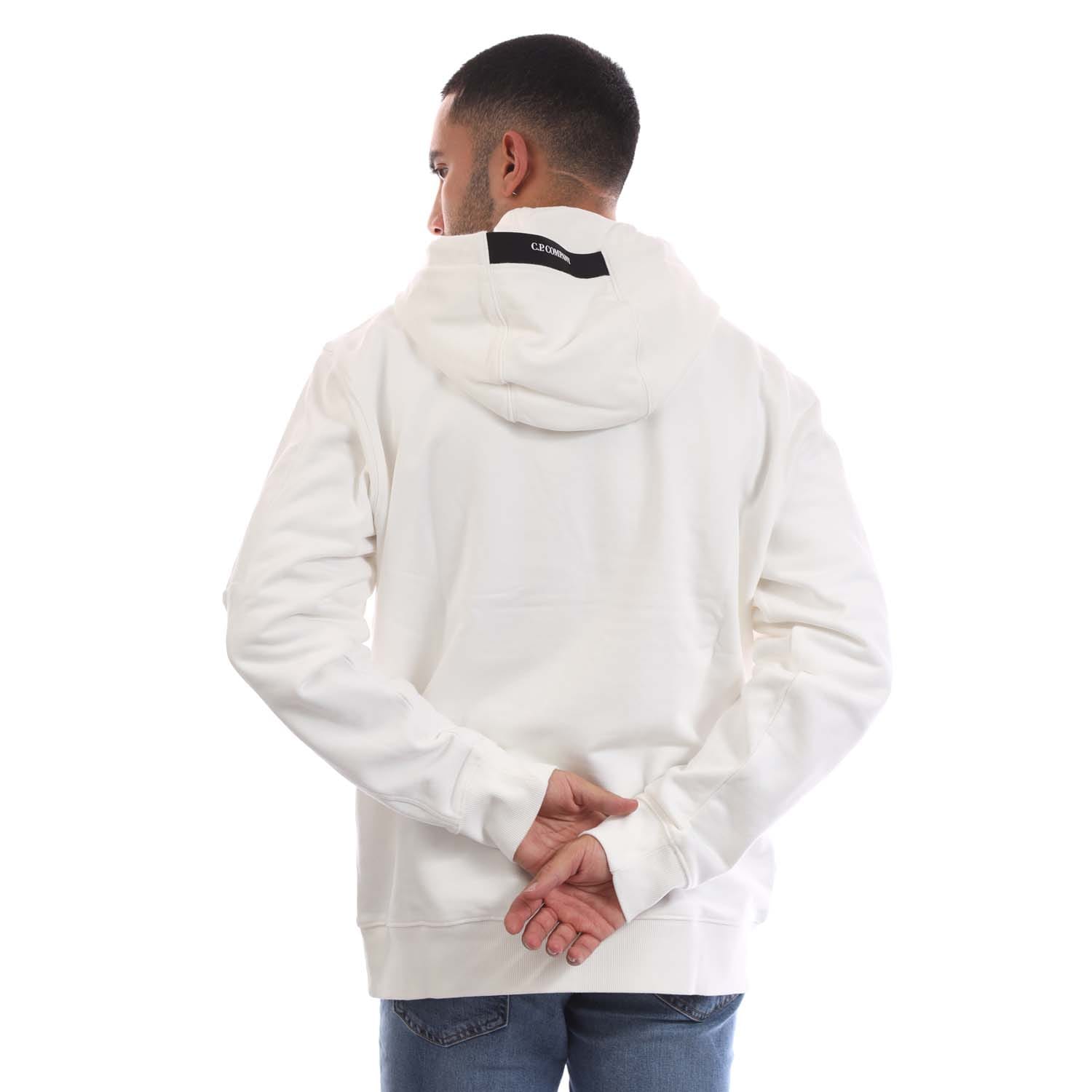 Mens C.P. Company Diagonal Raised Fleece Lens Hoodie in white.