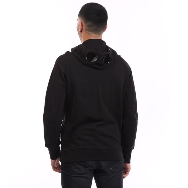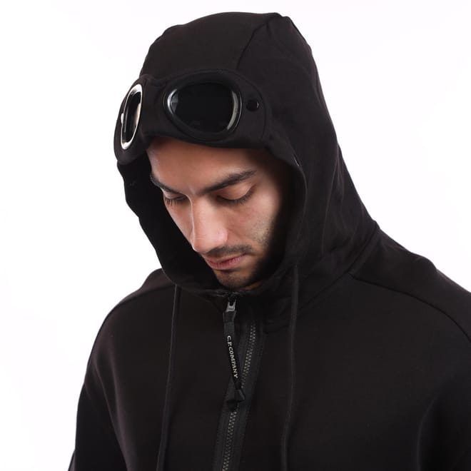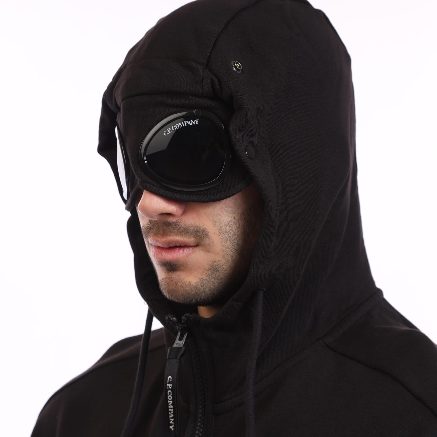 Mens C.P. Company Diagonal Raised Fleece Google Hoodie in black.