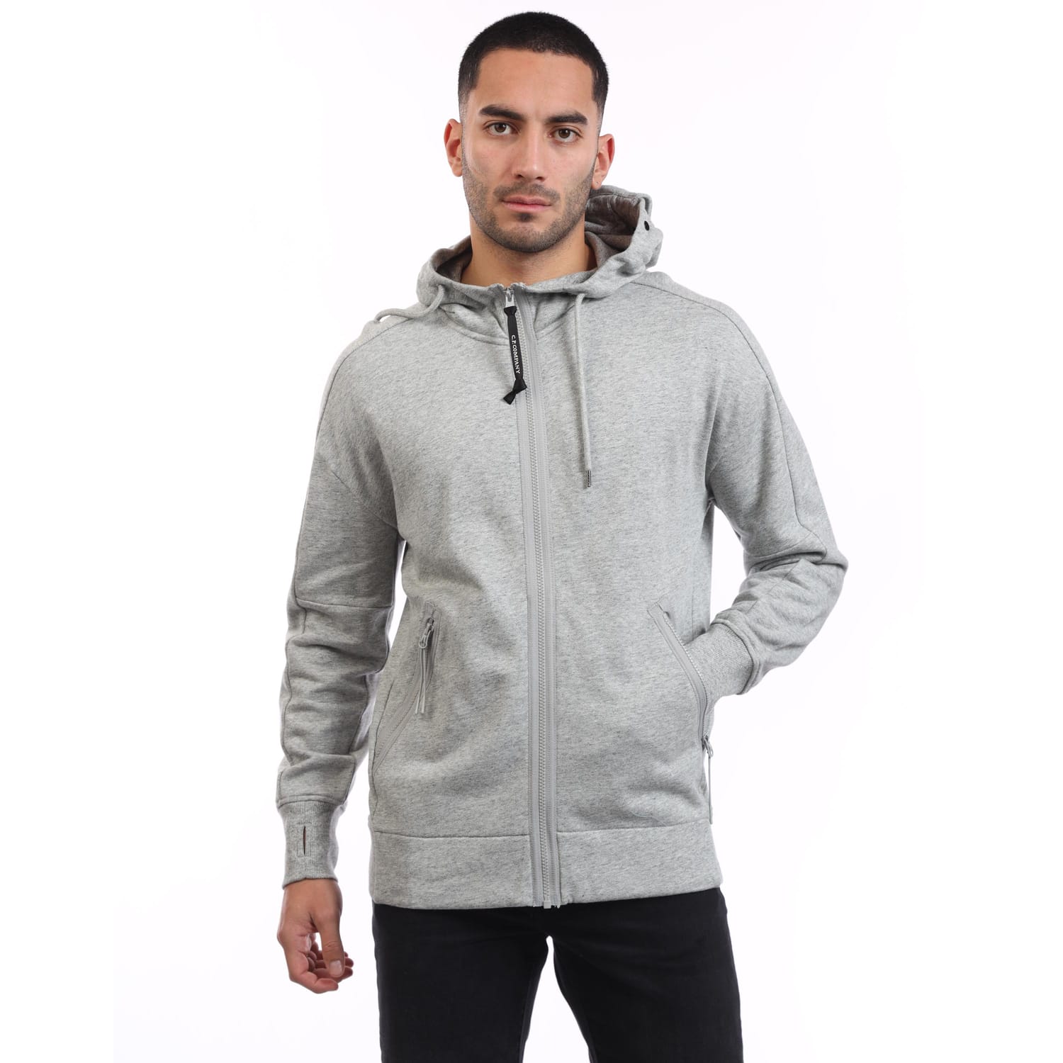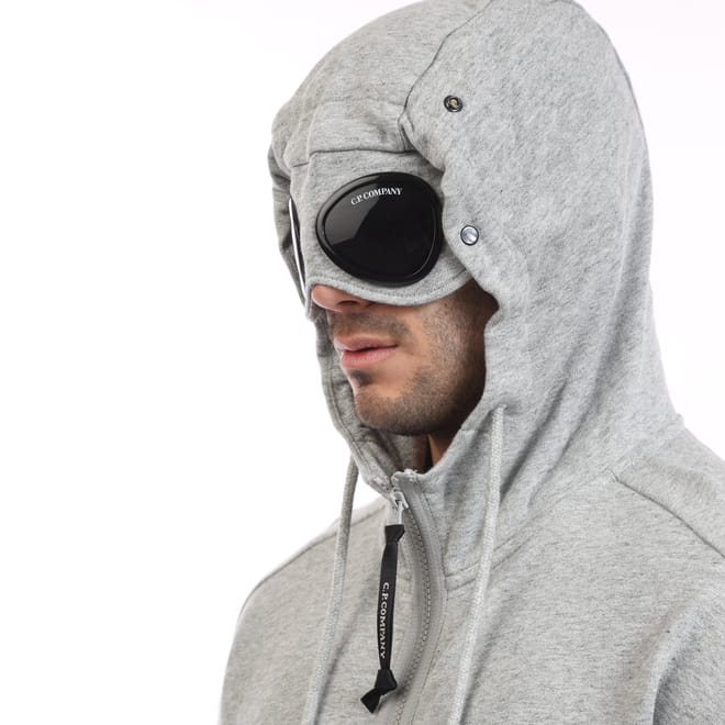 Mens C.P. Company Diagonal Raised Fleece Goggle Hoodie in grey.