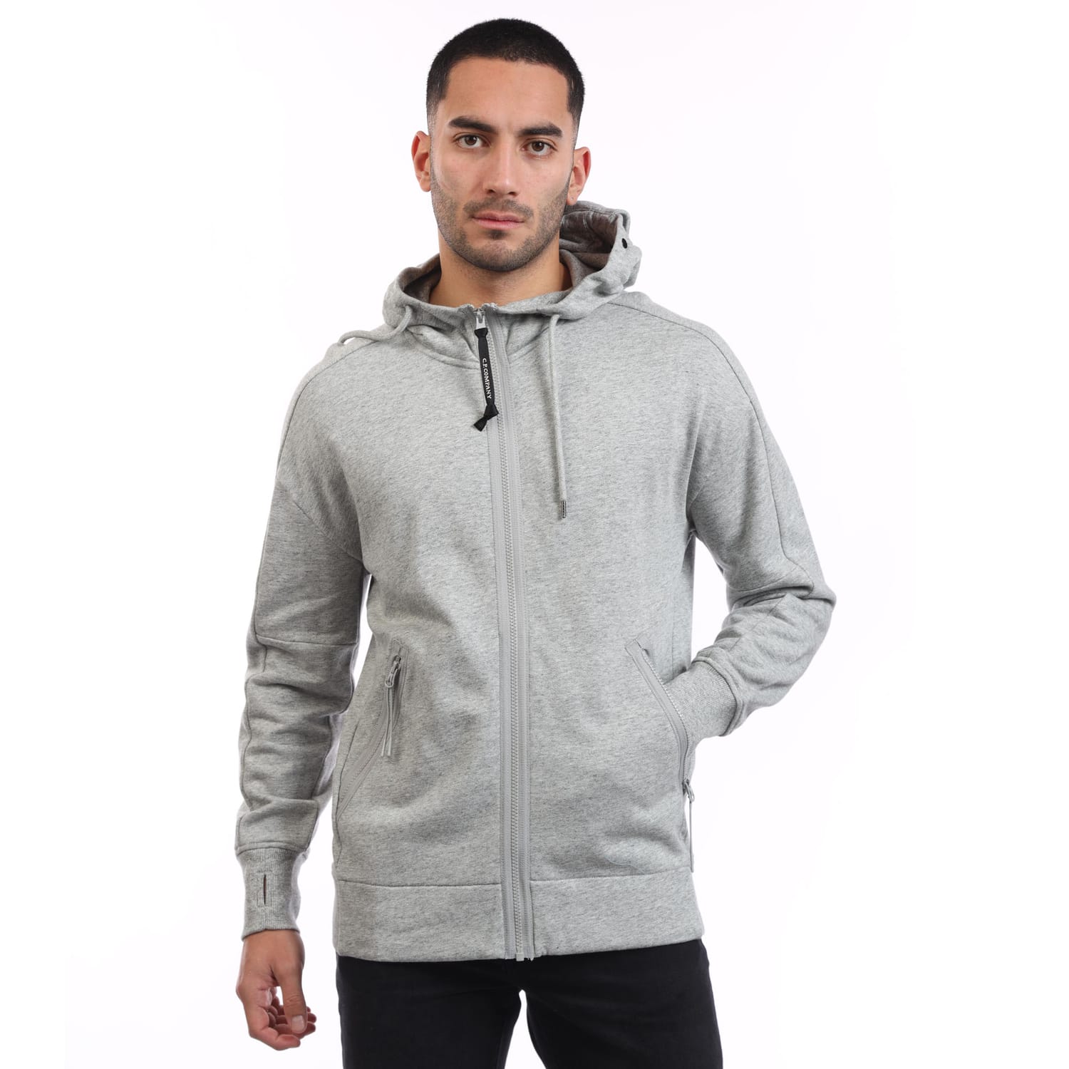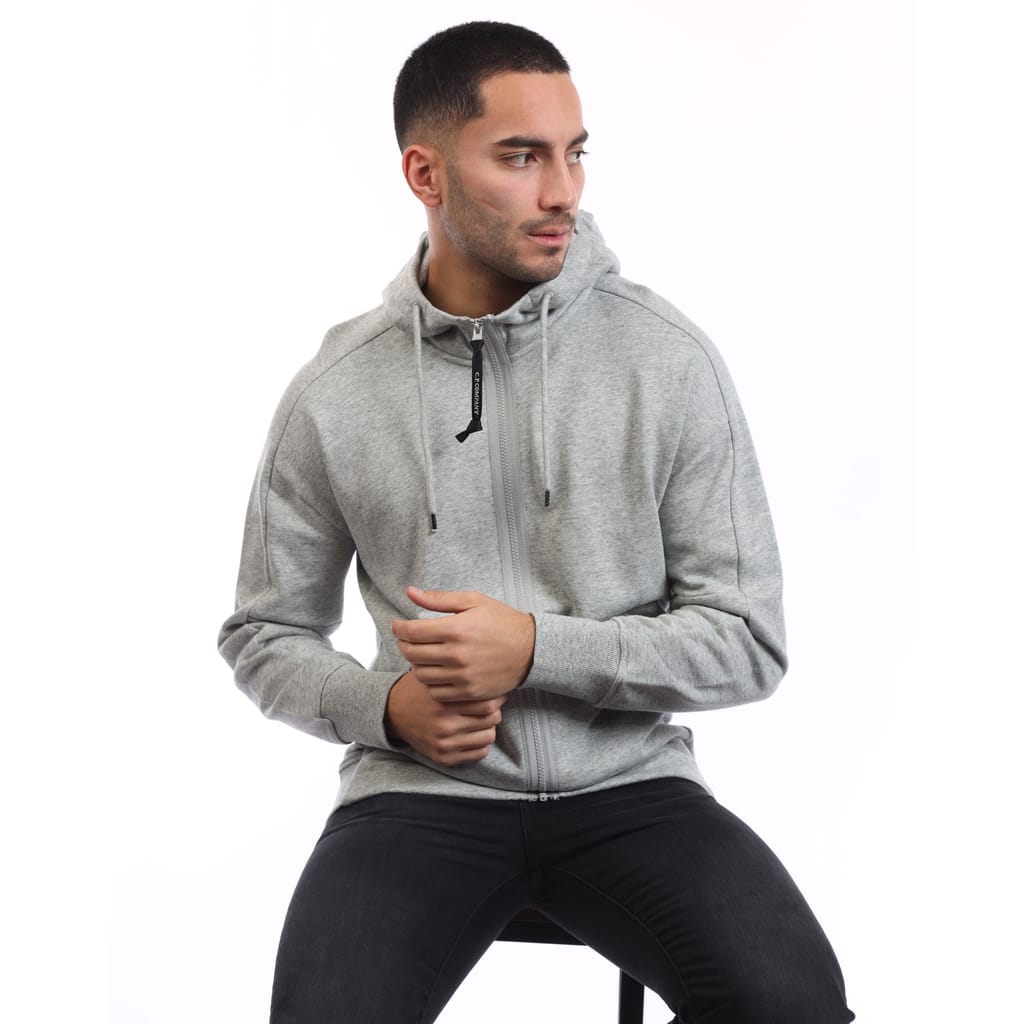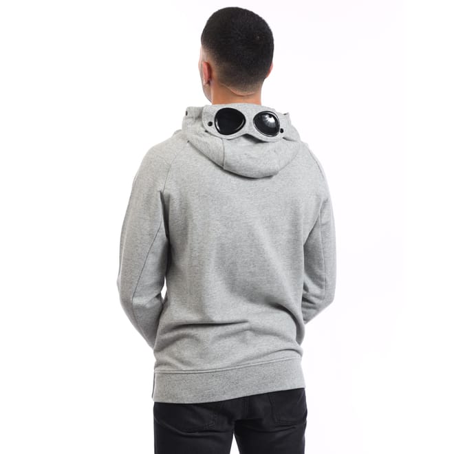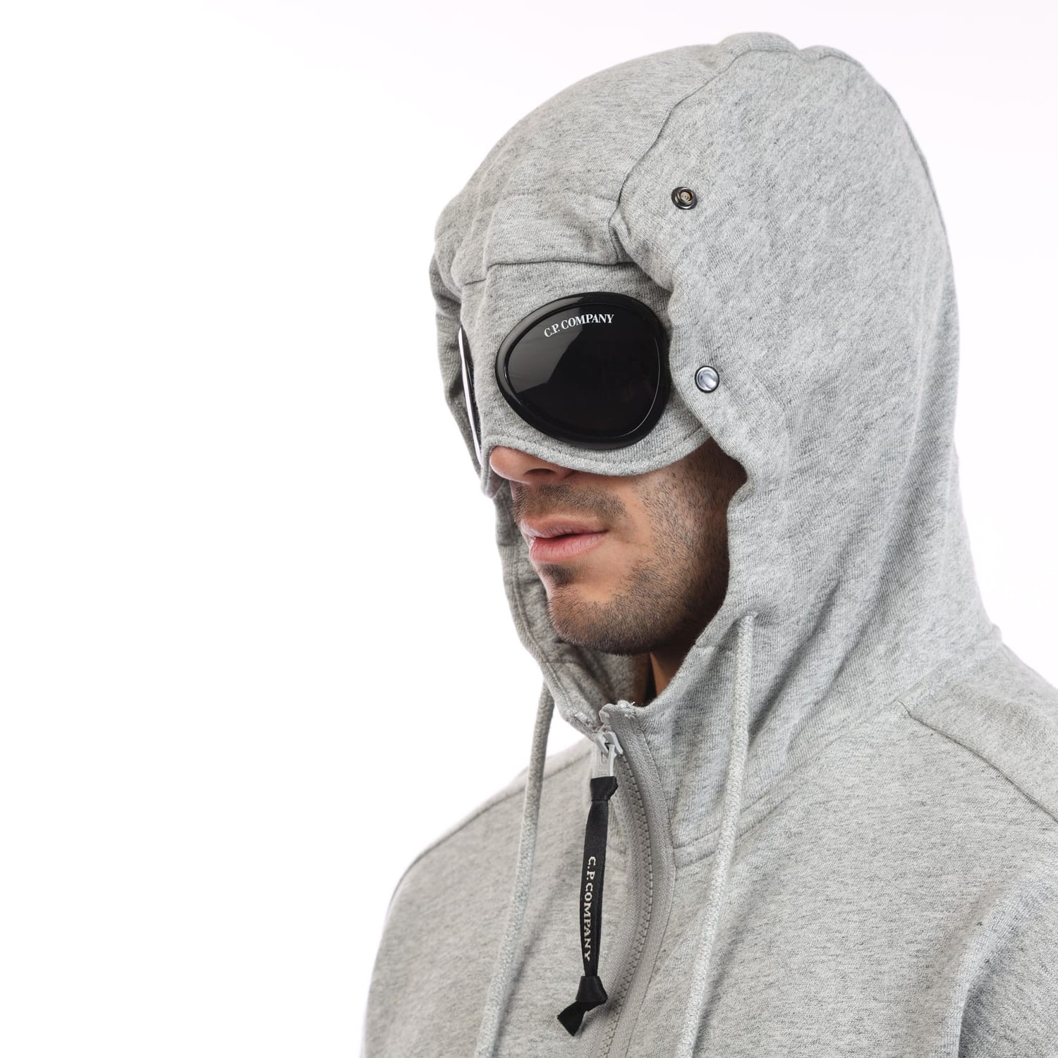 Mens C.P. Company Diagonal Raised Fleece Goggle Zip Hoodie in grey.