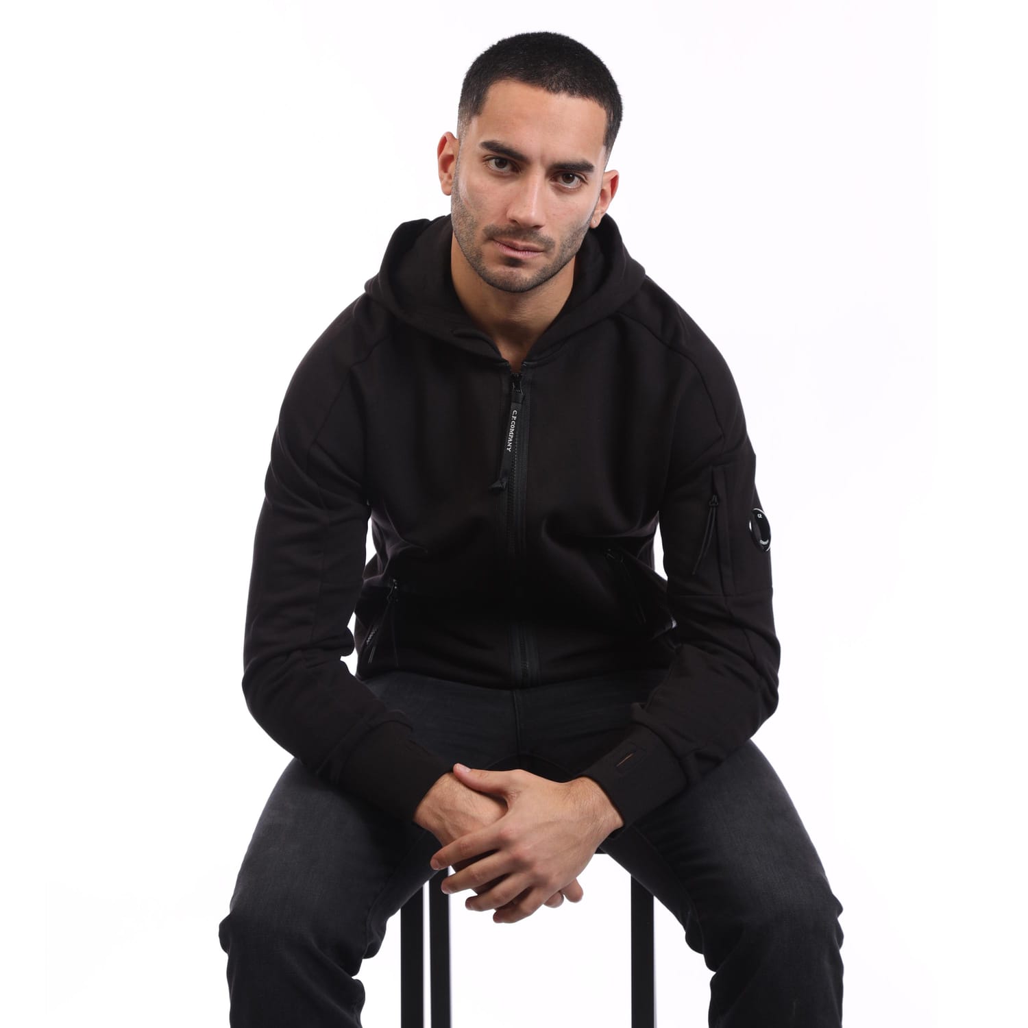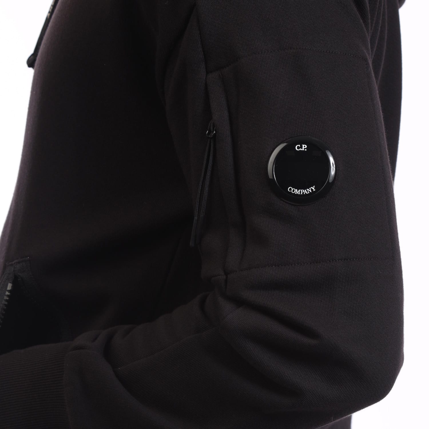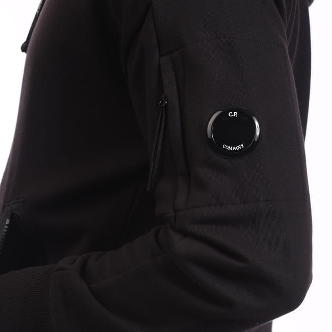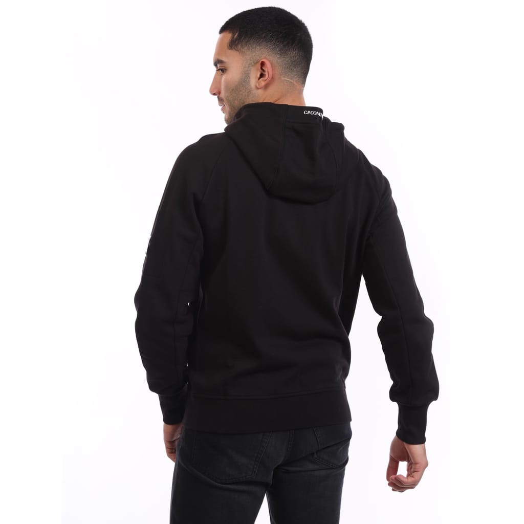 Mens C.P. Company Diagonal Raised Fleece Lens Hoodie in black.