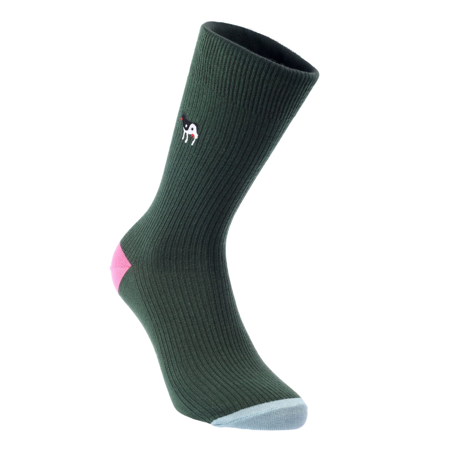 Happy Socks Ribbed Embroidery Ying Yang Cow Socks in green.
