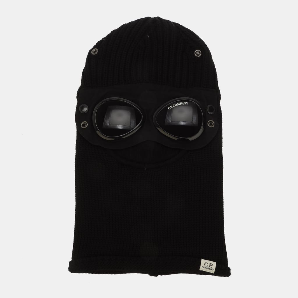 Mens C.P. Company Extrafine Merino Wool Goggle Balaclava in black.