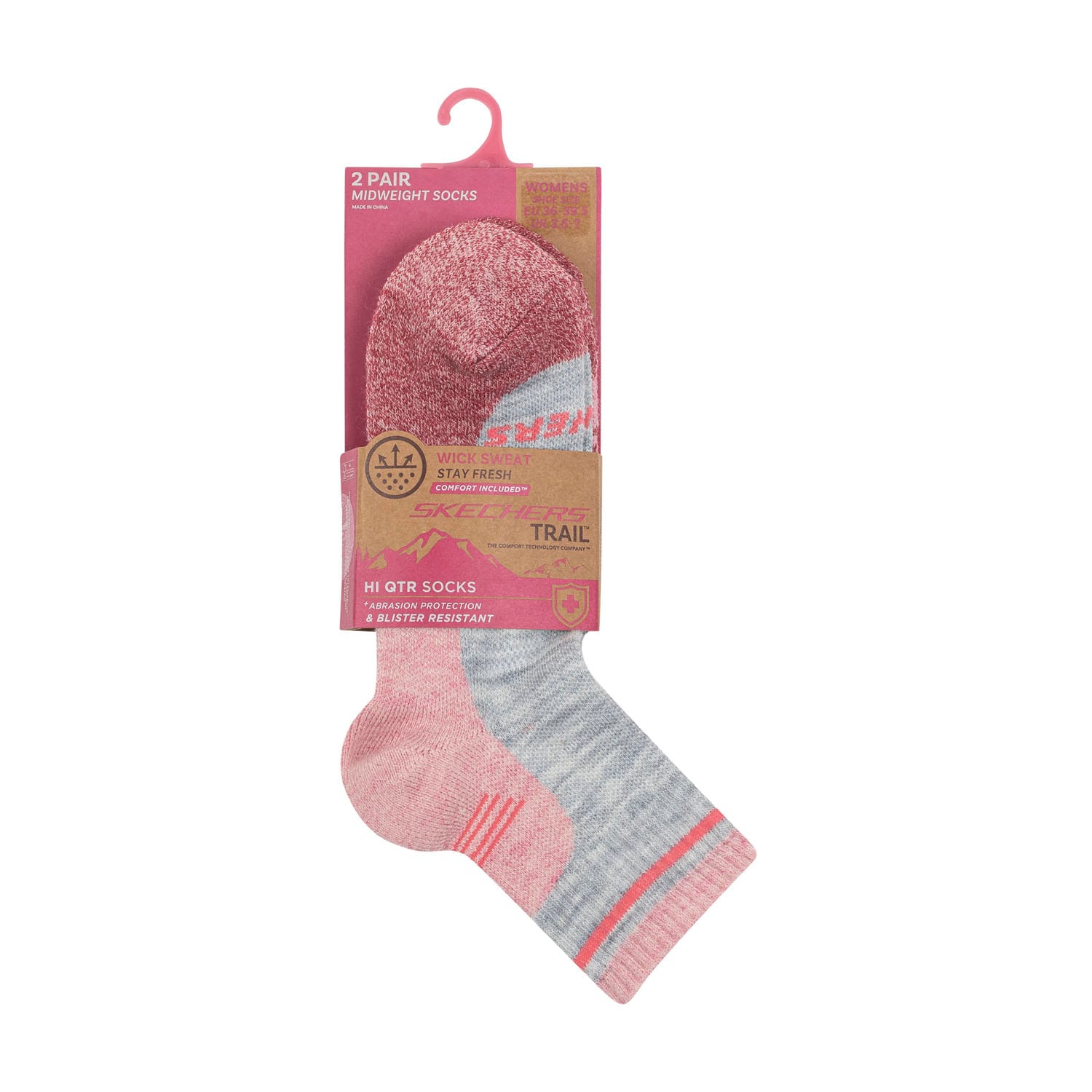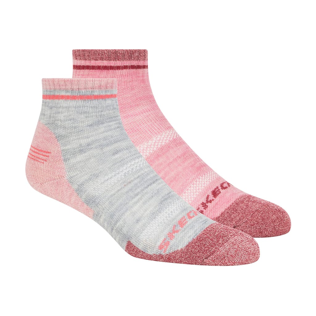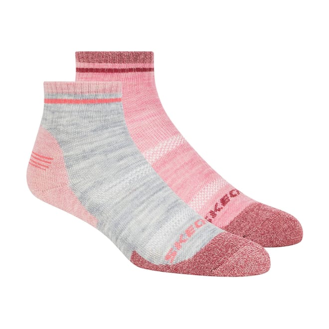 Skechers 2 Pack of Trail Quarter Crew Socks in pink grey.