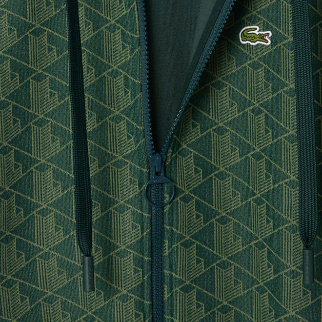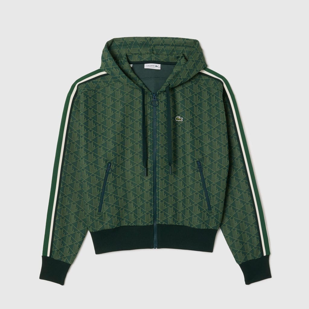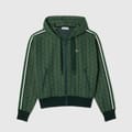 Womens Lacoste Jacquard Monogram Hoodie in green.