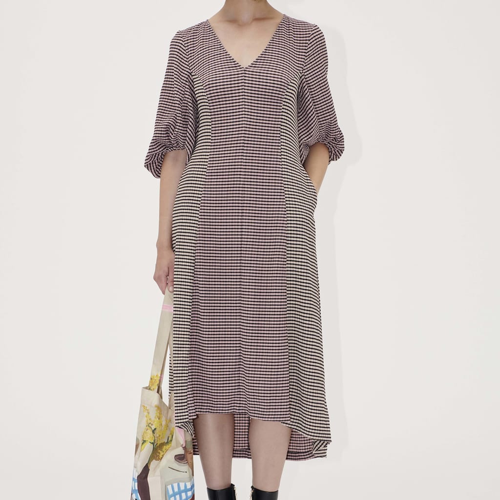Womens Stine Goya Three Quarter Sleeve Midi Dress in pink / black