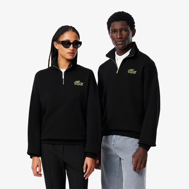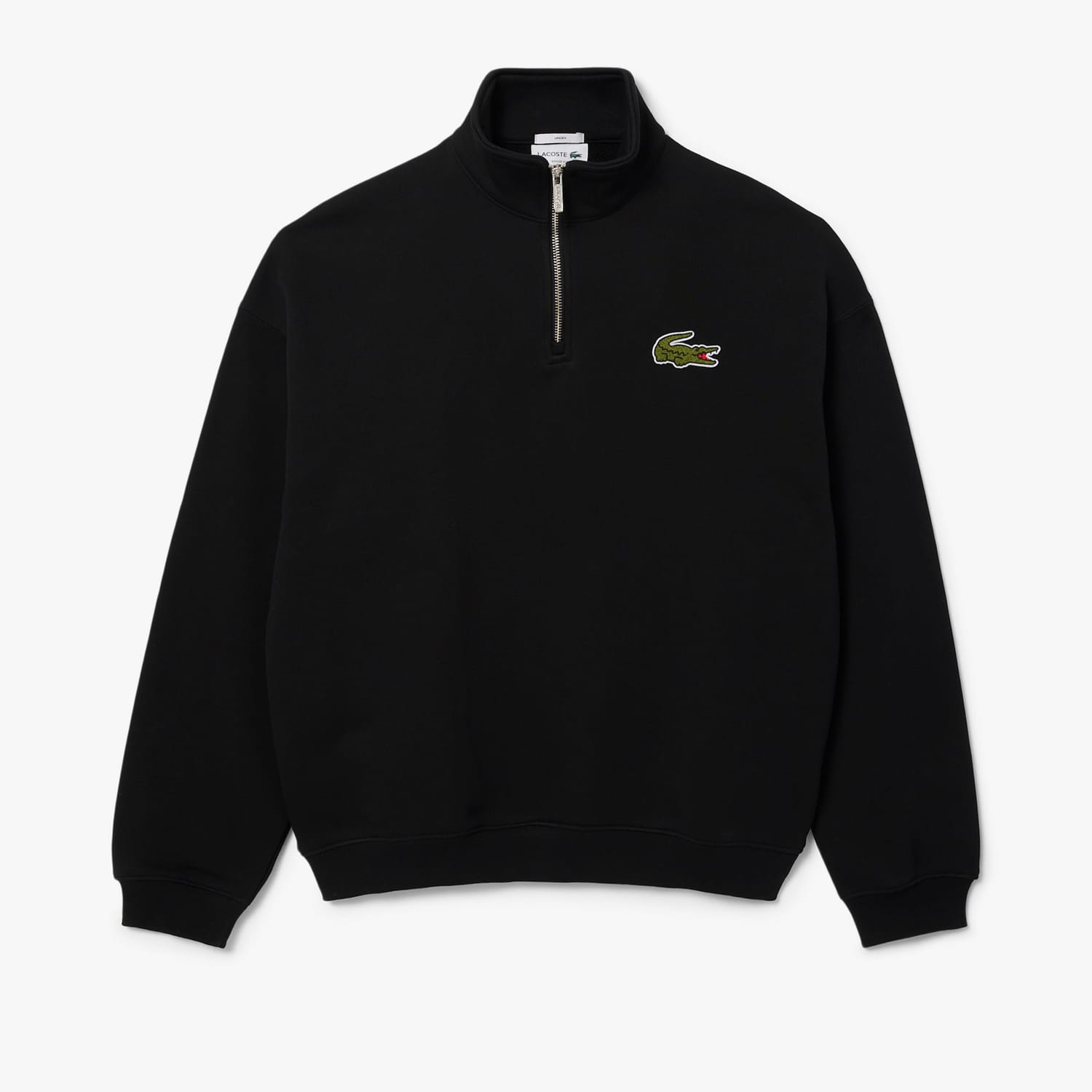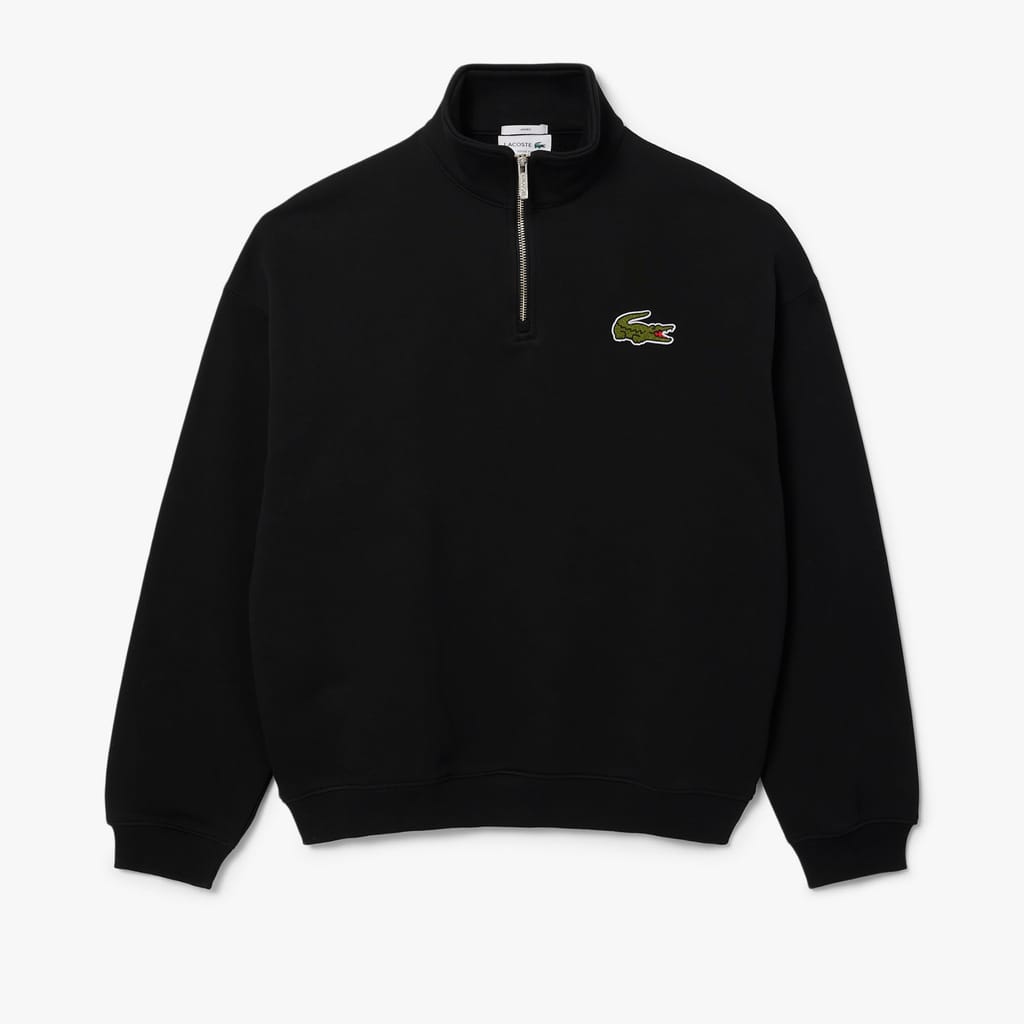 Unisex Lacoste Loose Fit Zip Neck Badge Accent Sweatshirt in black