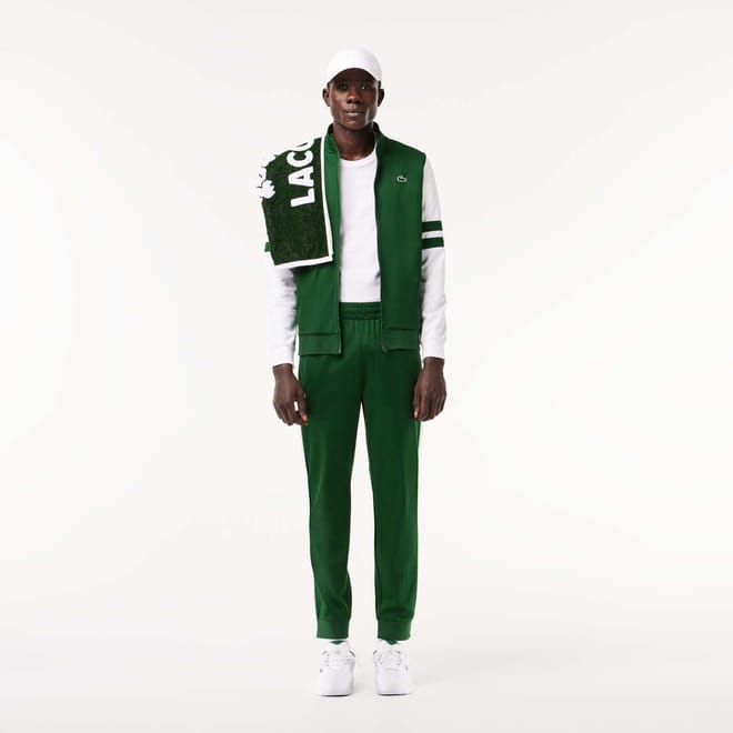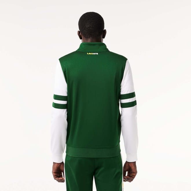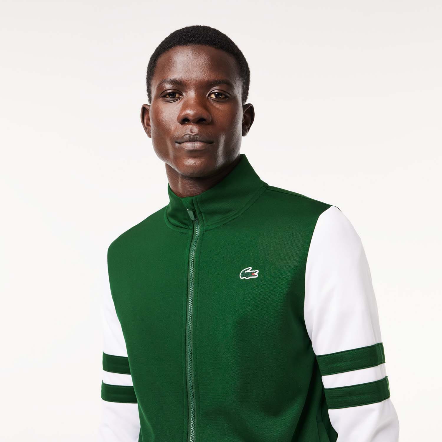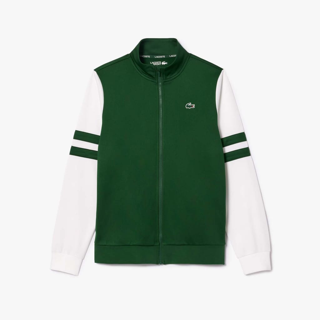 Mens Lacoste Sport Zip-Up Stretch Tennis Sweatshirt in green / white