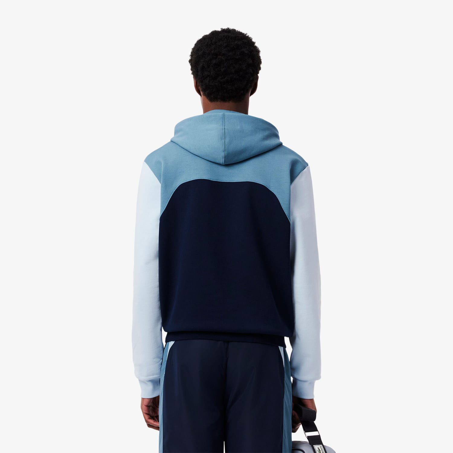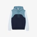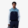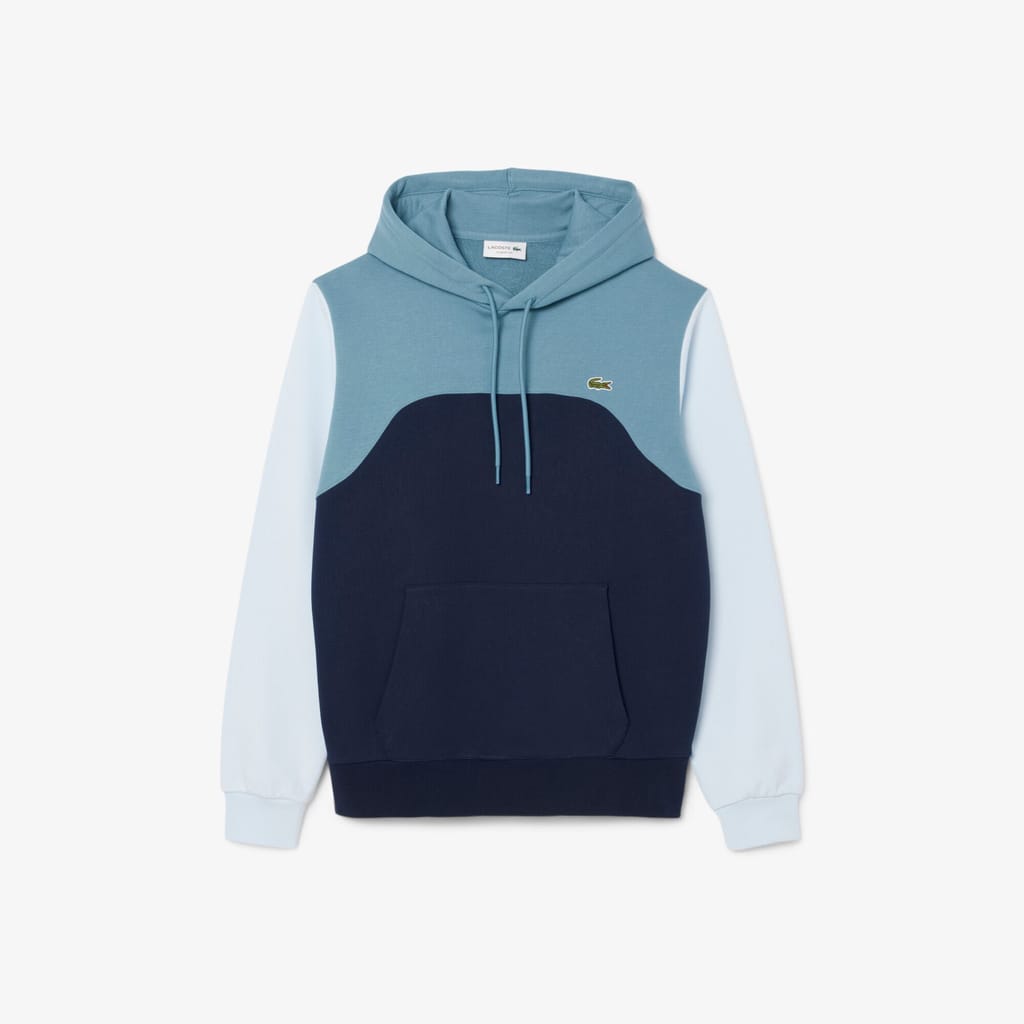 Mens Lacoste Classic Fit Colour-Block Hooded Sweatshirt in navy blue / limestone / rill.