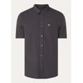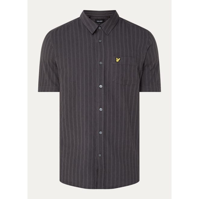 Button-down collar. Short sleeves. Full button fastening. Chest pocket with eagle golden tab. Textured stripe design. Regular fit. -
