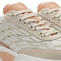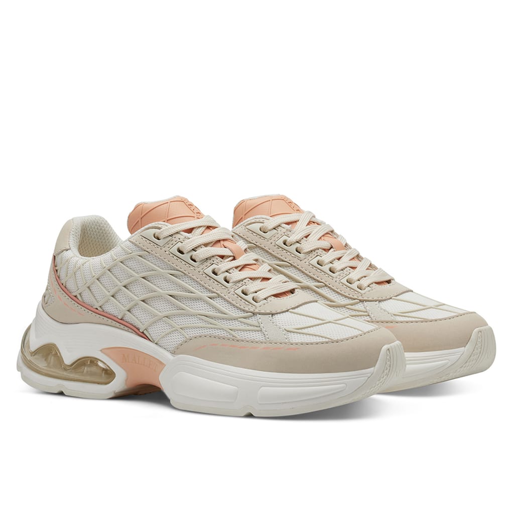 City chic and sophisticated these Neptune Trainers from Mallet make a contemporary addition to your everyday ensemble. Inspired by London's iconic Gherkin skyscraper these trainers are intricately crafted using recycled mesh underlays for comfort meaning they are not only sustainable but stylish too especially with the embroidered stitch upper panel lines reminiscent of the building's distinctive contours. The black KPU tongue and box leather heel tab add a touch of sophistication, mirroring the skyscraper's sleek facade. With a reliable lace fastening these trainers make for a secure fit and comfortable feel.The Neptune Black Stitch's aesthetic is completed by a white midsole, contrasting with a black outsole tread, midsole bubble, and gloss outsole insert, creating a dynamic visual impact, punctuated by silver-foil branding these trainers come to a distinctive finish. -