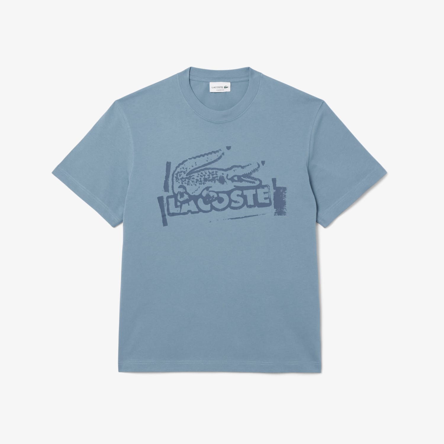 Fashion meets sportswear in this T-shirt, the fruit of 90 years of Lacoste creative expertise. Made from comfortable cotton jersey, with a large stencil-style print featuring our brand signatures. Finished with sophisticated details, including an embroidered crocodile on the back.