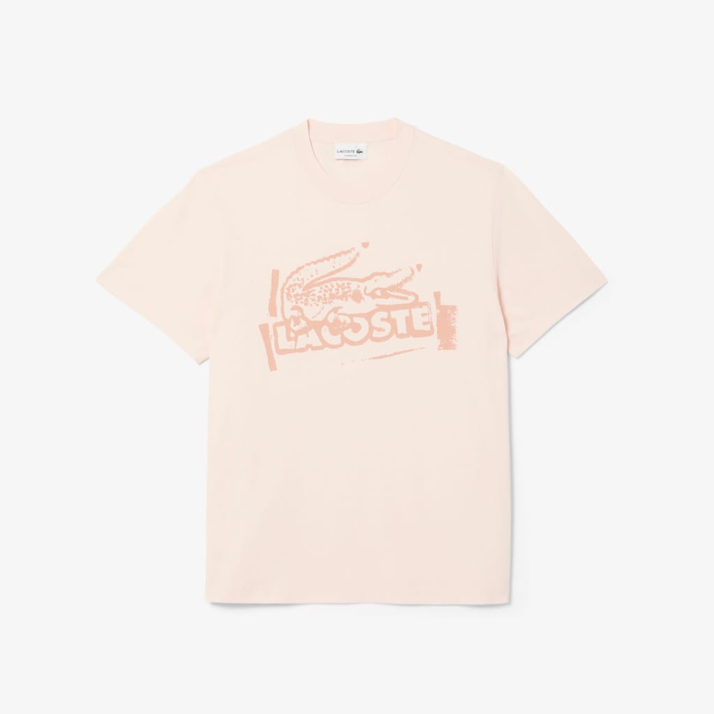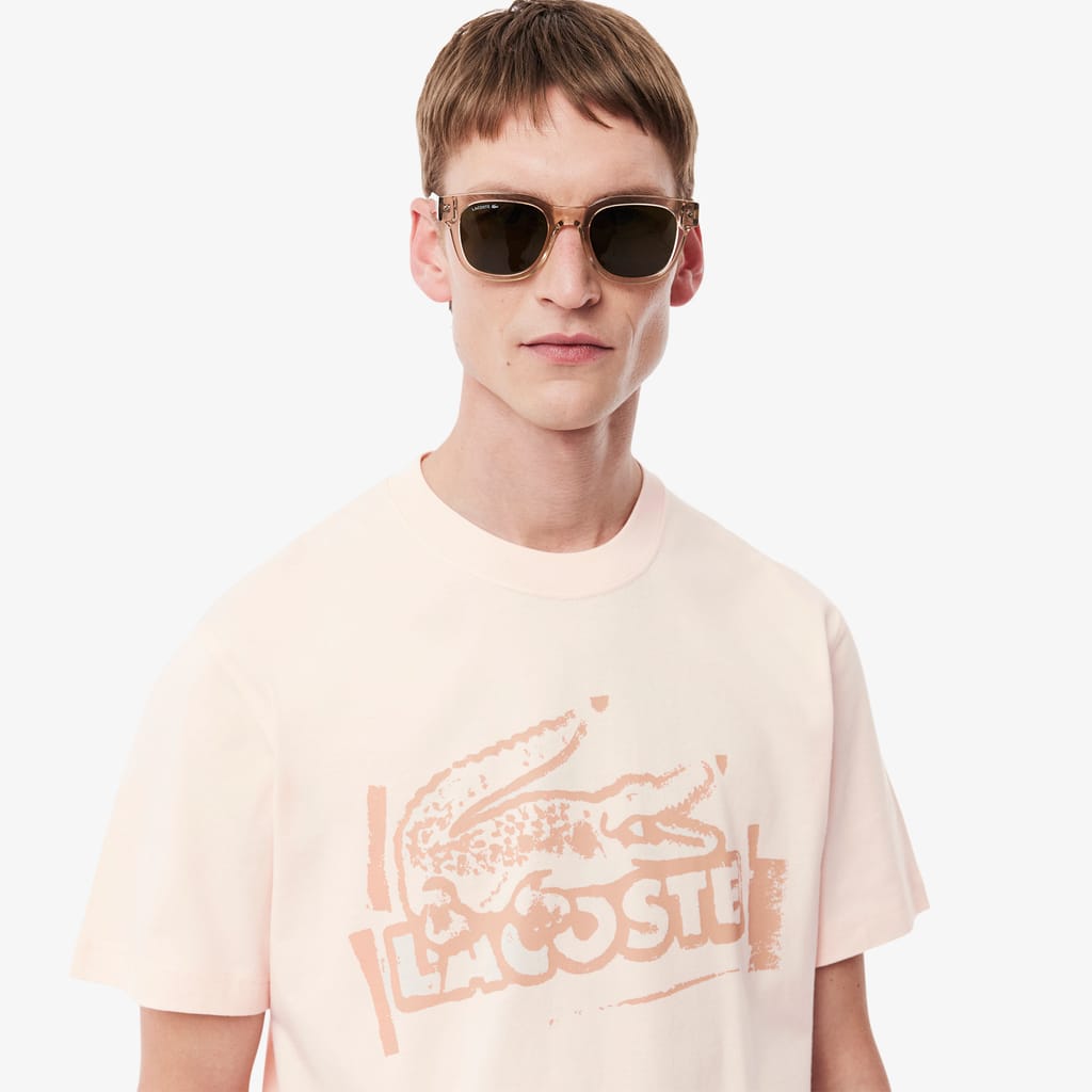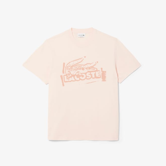 Fashion meets sportswear in this T-shirt, the fruit of 90 years of Lacoste creative expertise. Made from comfortable cotton jersey, with a large stencil-style print featuring our brand signatures. Finished with sophisticated details, including an embroidered crocodile on the back.