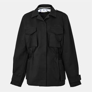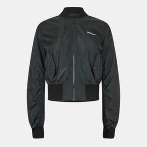 Off White Solid Patterned Lettering Bomber Jacket with Ribbed Cuff