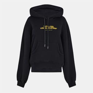 Off White Relaxed Fit Hooded Neck Lettering Kangaroo Pocket Sweatshirt