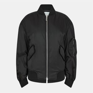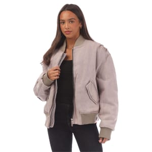 Off White Solid Patterned Lettering Bomber Jacket with Ribbed Cuff