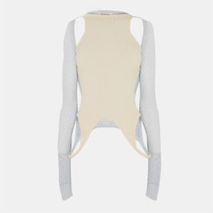 Off White Hooded Neck Lettering Full Zipper Ribbed Cuff Sweatshirt Jacket