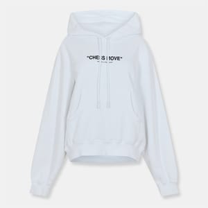 Off White Relaxed Fit Hooded Neck Lettering Kangaroo Pocket Sweatshirt