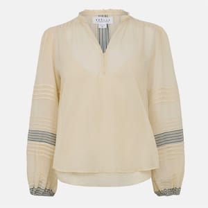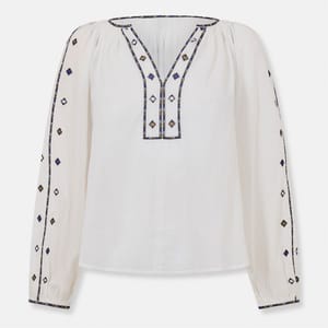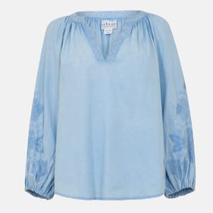 Velvet by Graham and Spencer Embroidered V-Neck Bishop Sleeve Blouse