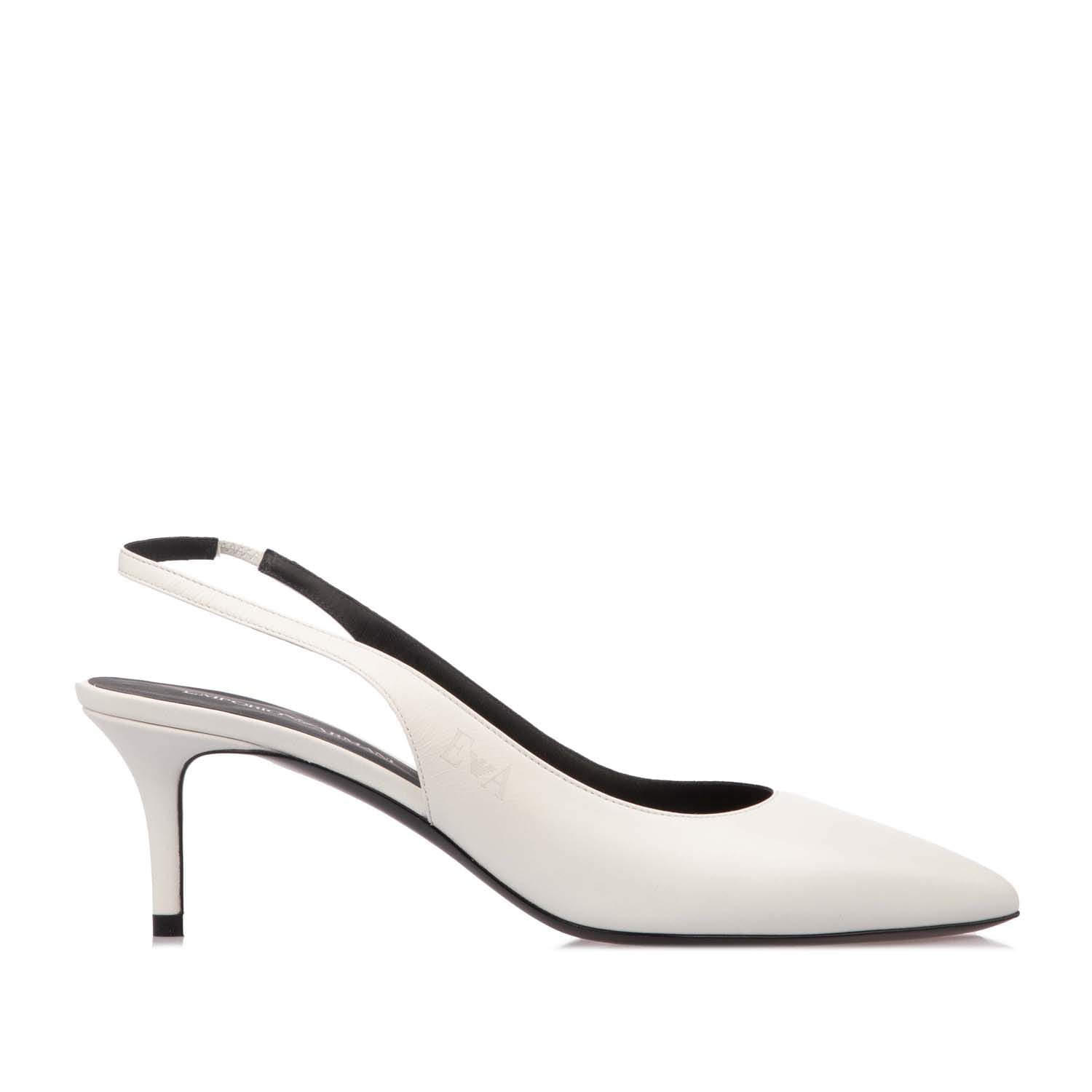 Women's Emporio Armani Heels. Bold, elegant, and effortlessly chic — the Yory slingback kitten heel is a statement in modern sophistication. Designed with a sharp pointed toe, a sleek kitten heel, and a delicate slingback strap, it offers the perfect balance of style and wearability. Whether paired with tailored pieces for a polished finish or styled with denim for a refined off-duty look, this timeless silhouette adds a striking touch to any outfit.- Leather Upper.- Kitten heel.- Elastic fastening.- Pointy toe.- True to Size. Material: Leather Upper, Synthetic Sole. Ref: X3E476H2000001. -