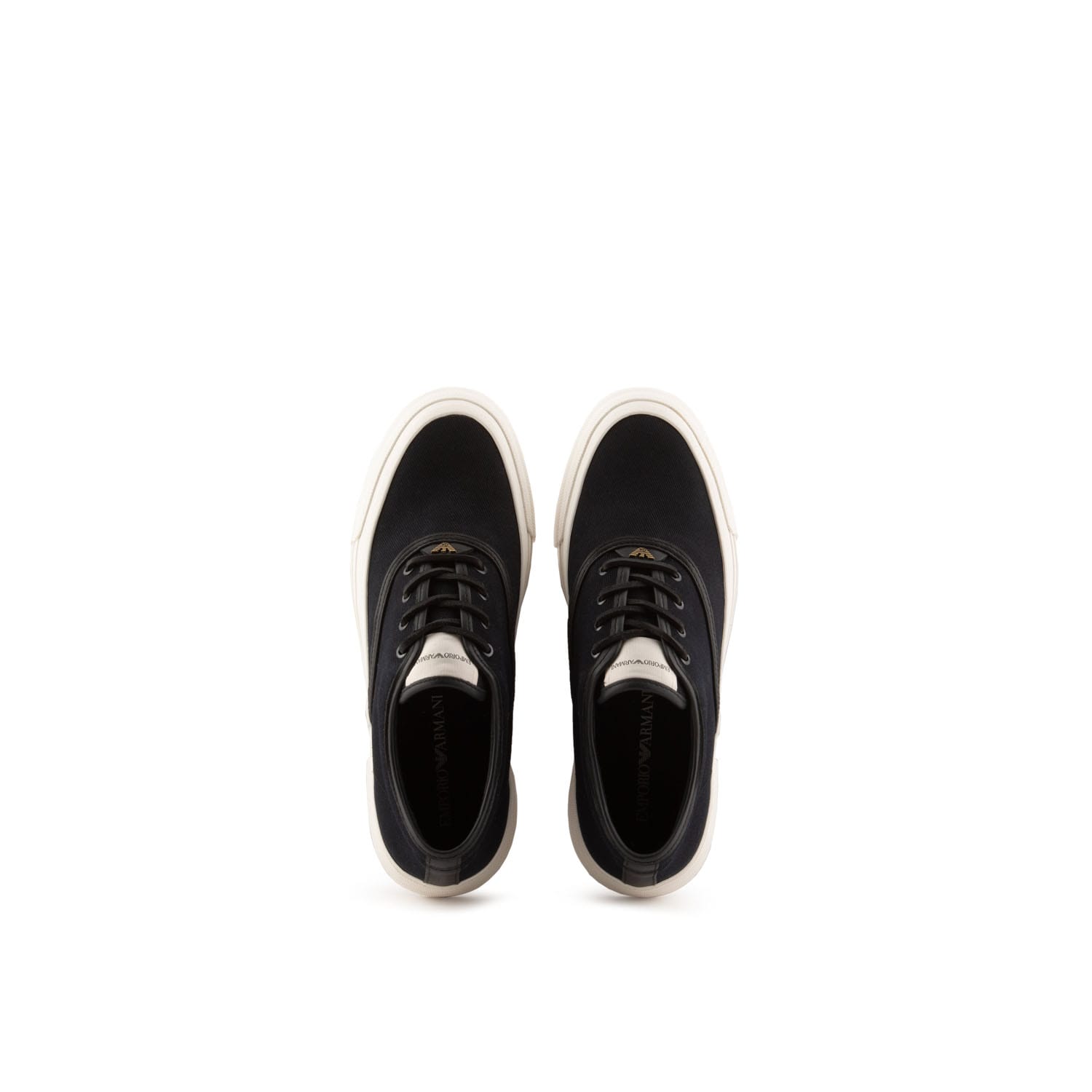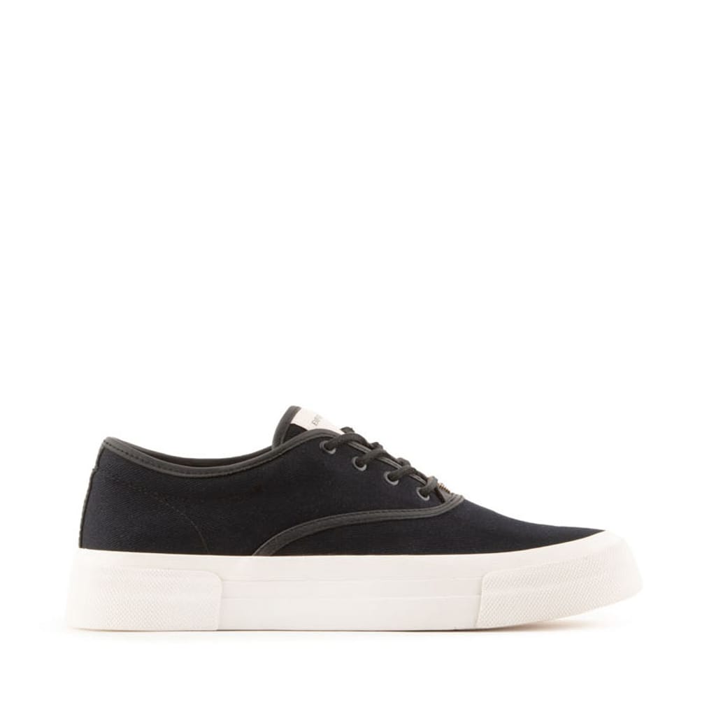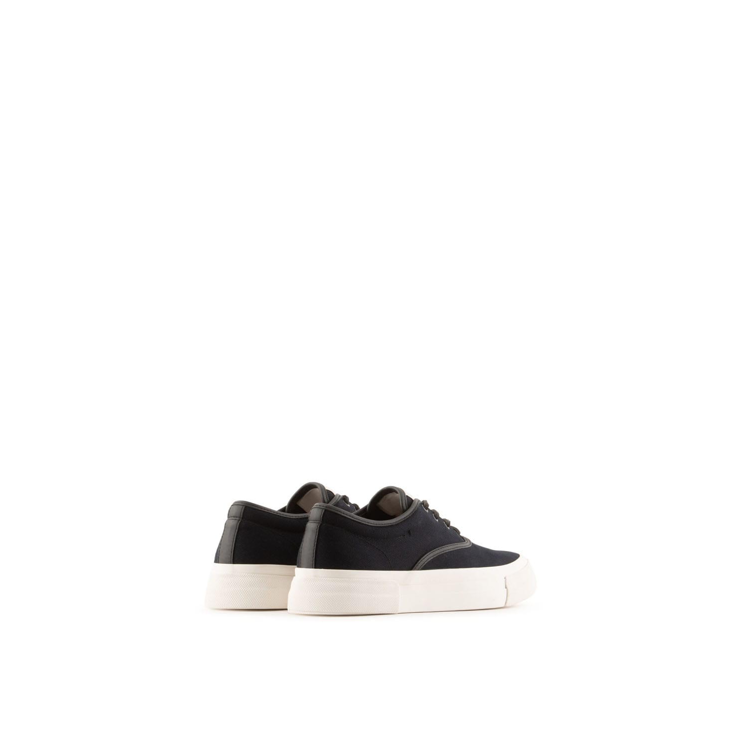 Canvas upper. Lace up fastening. Cotton lining, cork insole. White vulcanized rubber sole. -
