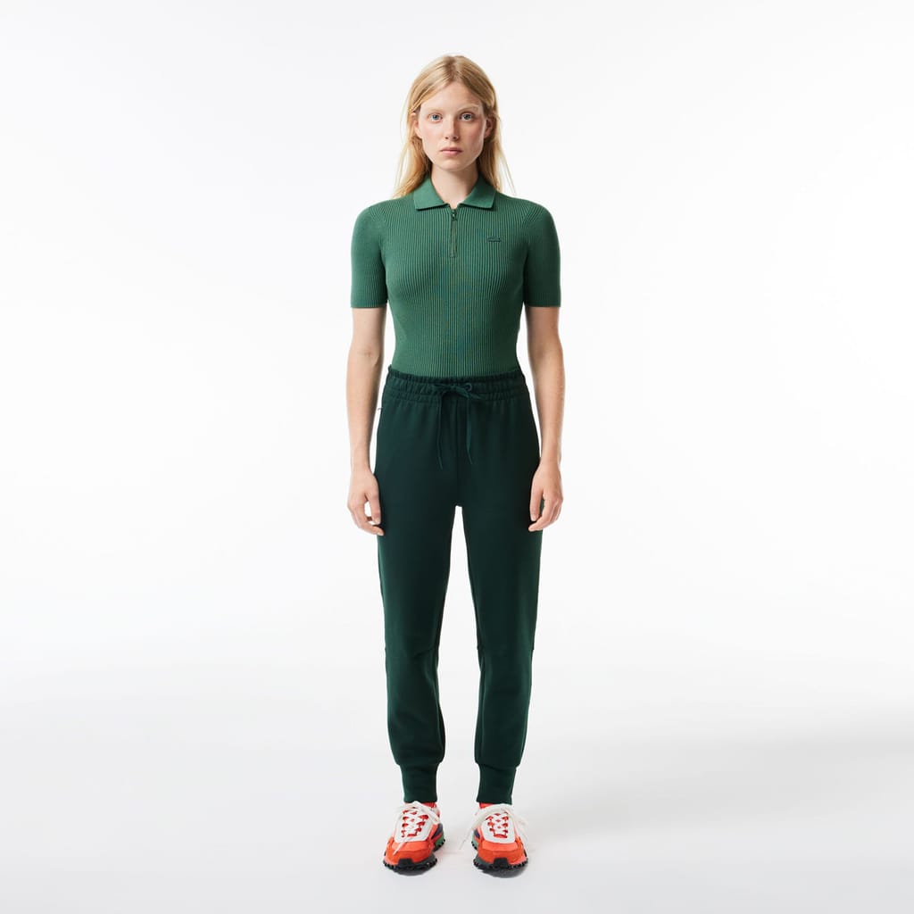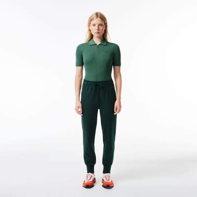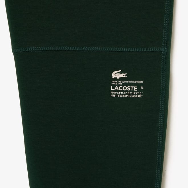 Cotton Sweatpants Organic cotton jersey and recycled polyester, limiting the production of virgin materials Tapered fit Key loop in front right pocket Printed with the geographical coordinates of Lacoste’s historic factory and headquarters Silicone crocodile -