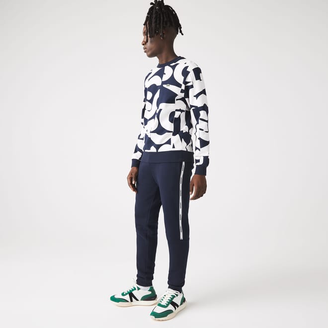 XH1208 Men's Branded Bands Skinny Fleece Joggers Brushed cotton blend fleece Elasticised waistband Tapered fit Tapered cut Side pockets, ribbed finishes on leg bottoms and Lacoste branding on stripes on sides Embroidered green crocodile on hip -